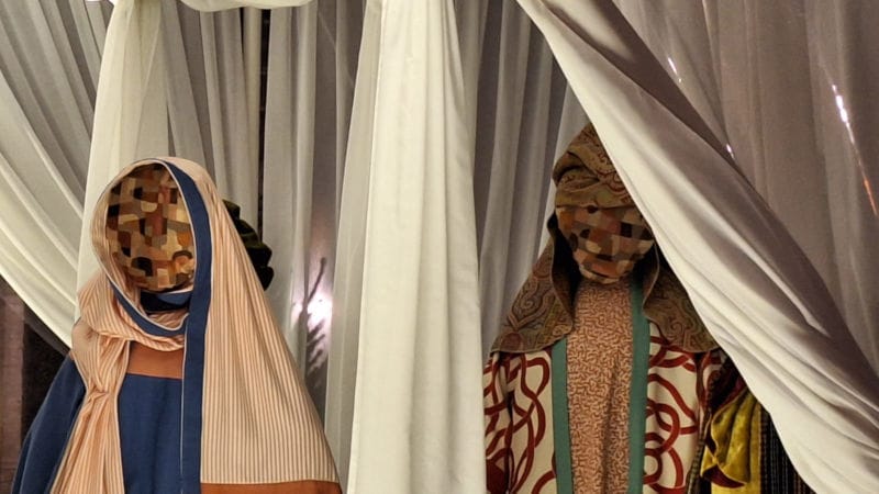 Ieslea tradițională din lemn și din paie a fost înlocuită cu un fel de cort, care pare mai degrabă o seră. Pruncul Iisus, Fecioara Maria și Iosif au chipurile realizate din materiale reciclabile.