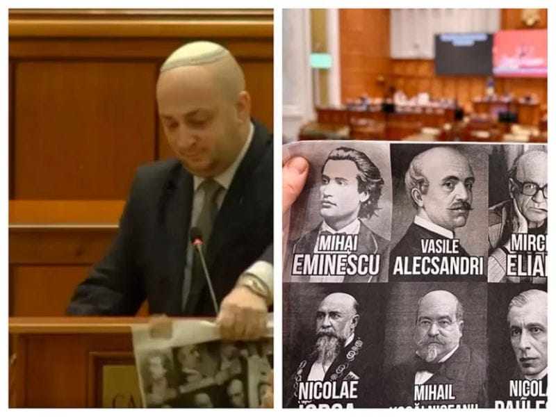 În contextul intervenției deputatului Robert Alecu (ACT), parlamentarul Silviu Vexler a rupt afișul expus pe tribuna din plen, afiș care conținea o selecție de nume fundamentale pentru cultura și istoria românească.
